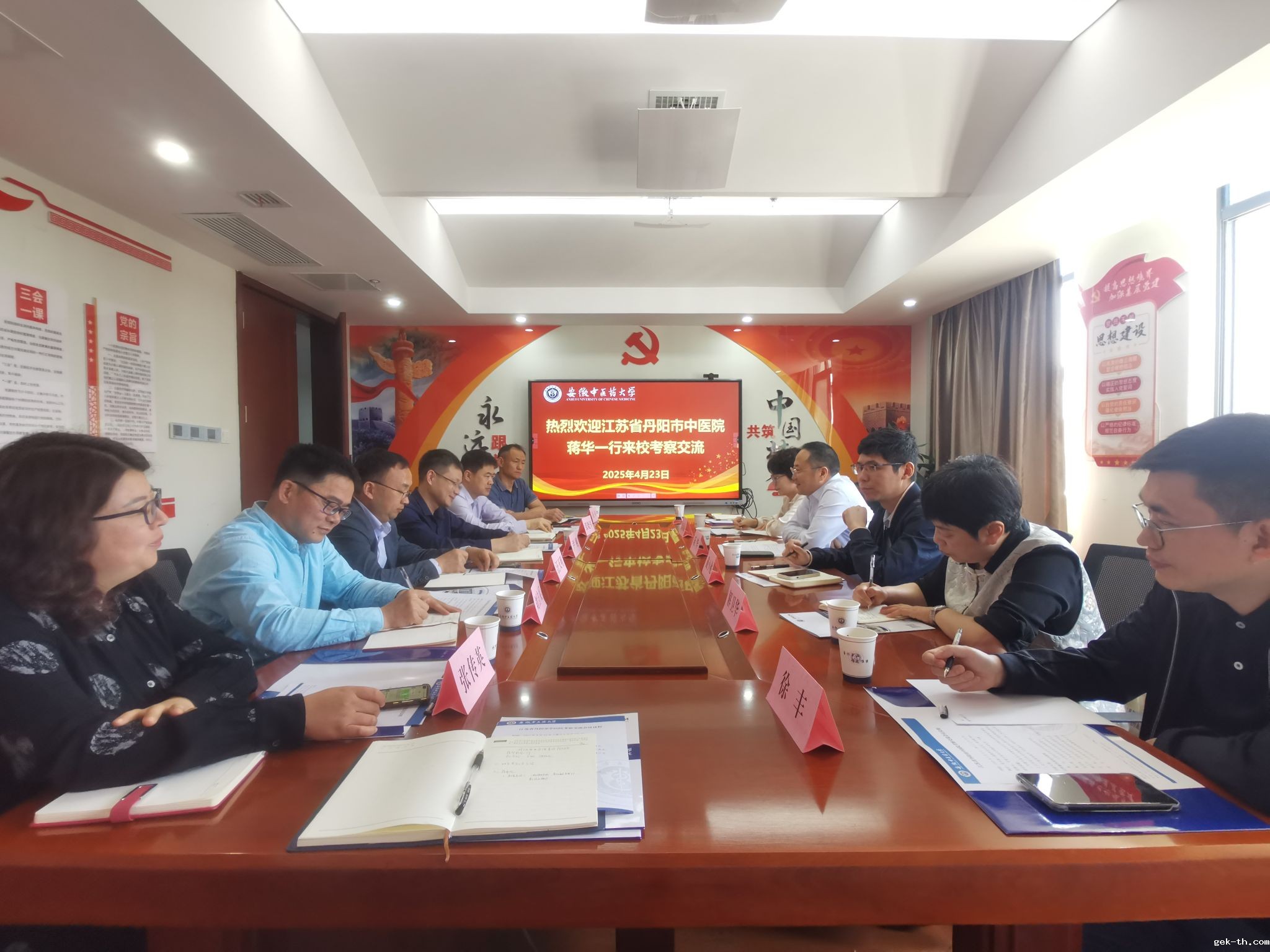 4月23日,江苏省丹阳市中医院党委书记蒋华等一行来校访问交流,并举行座谈。教务处、学生处、科技处、针灸推拿学院、护理学院等部门有关负责同志参加座谈会。会议由教务处处长尹刚主持。