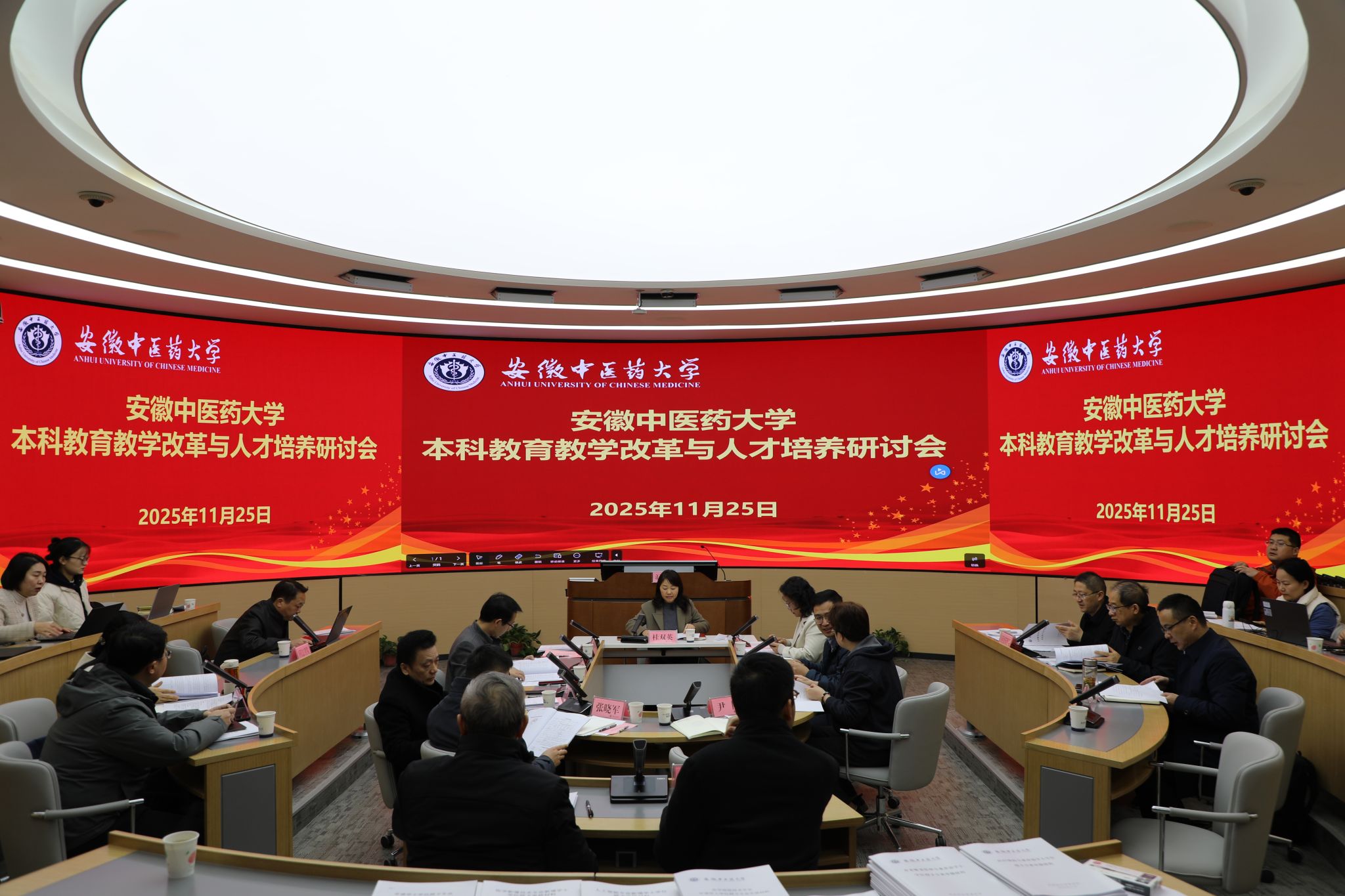 为顺应新时代高等教育发展要求,全面落实立德树人根本任务,贯彻教育强国建设规划纲要(2024—2035年)精神,11月25日,“十五五”教学改革与人才培养研讨会和专题报告会在我校少荃湖校区召开。学校党委常委、副校长桂双英,原中国驻法国使馆公使衔教育参赞马燕生,合肥工业大学教务处副处长夏娜教授,合肥大学教务处处长葛春梅教授,安徽第二医学院教务处处长朱霖教授,合肥师范学院教务处副处长范程华教授,安徽医科大学第一附属医院(北区)陈健主任医师,安徽医科大学教务处副处长王常青副教授,学校教学督导王茎教授,学校教务处、人事处、学生处、校团委、教育教学质量评价与教师发展中心、各学院等部门负责人及相关专业负责人参加。会议由桂双英主持。