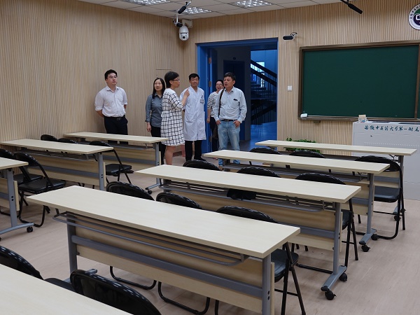 9月29日,学校教务处处长许钒在第一临床医学院副院长尚莉丽、党委副书记、纪委书记周其艳的陪同下,实地考察国家级实验教学示范中心―中医学临床技能实训中心建设工作。