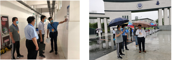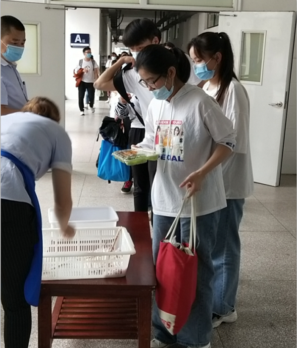 二、强化疫情防控要求,切实保障考生安全。要求考生携带身份证、准考证、健康承诺书和14天内行程查询等,由指定通道测量体温后,按指示标牌沿指定路线和入口进入考场。合理划分入检区、测温区、临时观察区、考生通道,适时对考场进行全面消毒,确保考场内空气畅通,做好考生之间保持安全距离等工作。为师生配备充足的防疫物资,安排多名医务人员为考生提供防疫及医疗保障。同时,邀请属地疫情防控部门工作人员担任副主考,负责考点疫情防控及突发公共卫生事件应急处置工作。坚持以生为本,安全第一,要求考生在考试间歇期间不得离开考场所在楼层,考试结束后分时段离开考场。学校配送中餐至考场,考生走出考场即可方便就餐,并安排指定地点作为考生就餐和休息室。