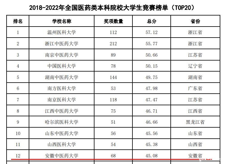 3月22日,中国高等教育学会高校竞赛评估与管理体系研究专家工作组发布《2022全国普通高校大学生竞赛分析报告》(以下简称《分析报告》)。我校在《2018-2022年全国医药类本科院校大学生竞赛榜单(TOP20)》中位列第12位,较上一年度排名提升3位。