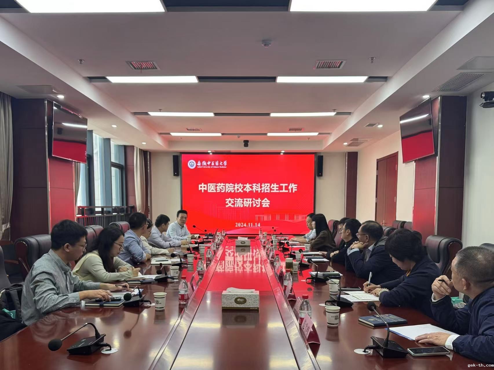 11月14日,成都中医药大学、贵州中医药大学、河北中医药大学、湖南中医药大学、山东中医药大学、陕西中医药大学等6所中医药院校招生就业相关负责人一行赴我学校交流taptap安装地址工作。教务处(招生办)处长王茎主持交流研讨会。
