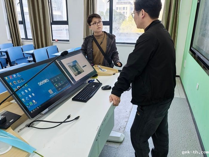 本次培训采用线上线下相结合形式开展,专业技术人员通过理论讲解、现场演示等形式对与会教师进行培训指导,内容涵盖智慧教室介绍、设备操作、教学软件应用等。