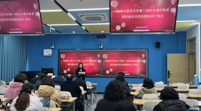 为加强通识教育,推进课程建设,构建“国家级-省级-校级”三级课程培育体系,教务处于2月29日下午在少荃湖校区智慧教学区B202室开展第一批校本通识教育课程项目结题验收汇报工作。会议由教务处副处长张艳春主持,储全根教授、方成武教授、周美启教授和申国明教授受邀作为评审专家参加会议。