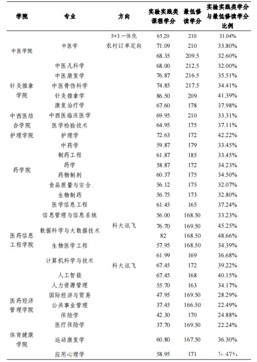 校内专业名称 | 选修课学分占最低修读学分比例 |