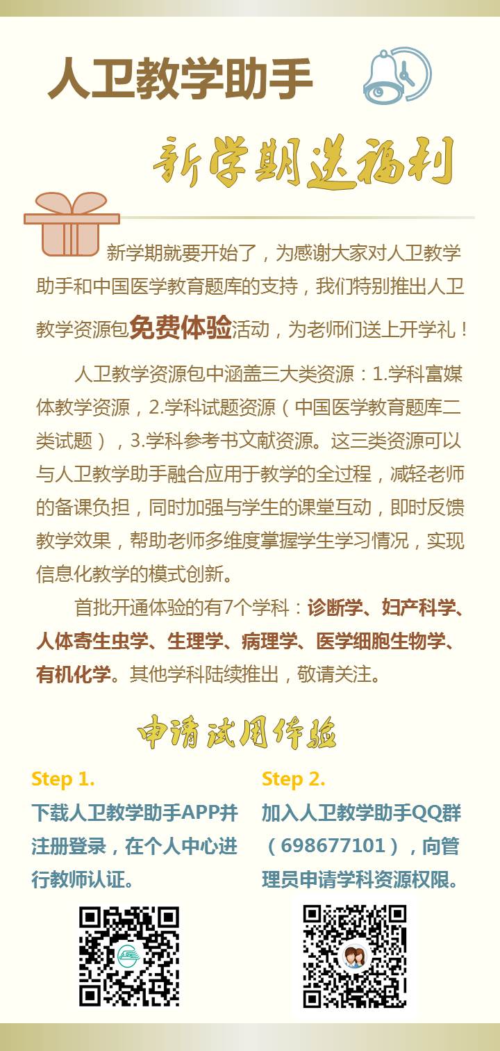 关于开展“人卫教学资源包”免费体验活动的通知